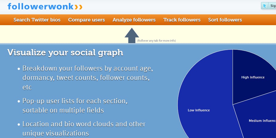 Этот сервис предлагает несколько инструментов. Основной из них — это анализ своих фолловеров. Благодаря этому ресурсу вы сможете узнать много полезной информации о ваших последователях: об их возрасте, о времени их активности в твиттере, получить карту тэгов их биографии, а также узнать об их авторитетности. Также вы можете сравнить конкретных фолловеров, проанализировать их деятельность и отписаться от кого-либо, не покидая сайта.